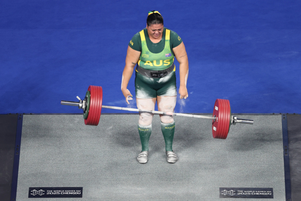 澳大利亚选手Soli'ai Laalaai Natalie在硬举比赛中失误。中国日报记者 魏晓昊 摄